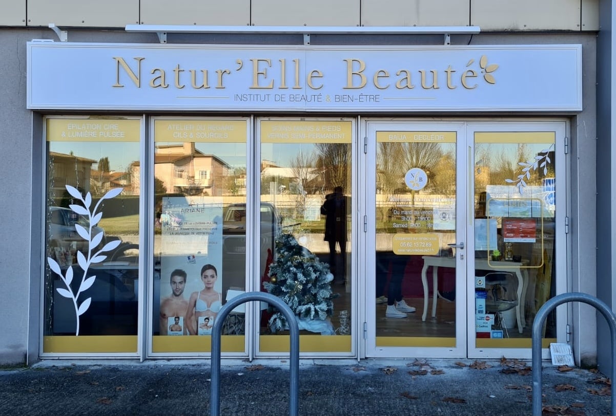 L’institut de beauté Natur’Elle beauté nous a contacté pour la réalisation de deux enseignes lumineuses et marquages vitrines pour son institut à Tournefeuille. Prise de rendez-vous, conseil, création, fabrication et pose nos équipes vous accompagne et vous conseil tout au long de votre projet.