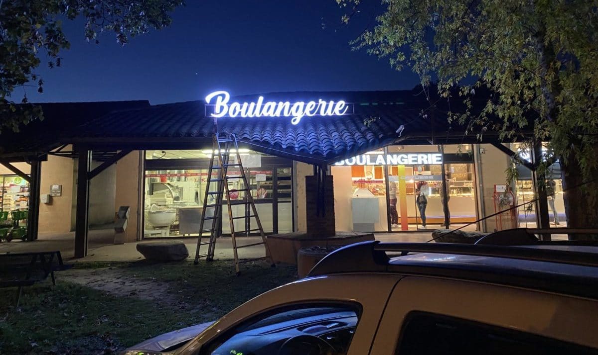 Et oui ! Nous sommes créateur, fabricant et aussi poseur d’enseigne, signalétique et marquage véhicule à Toulouse et grand sud. Les enseignes Led de la boulangerie Catusse ont été posées sur lisse de fixation ( cornière aluminium ) au dessus de la toiture. N’hésitez pas à nous contacter pour vos projets d’enseignes lumineuses, nos équipes sont à votre disposition. !