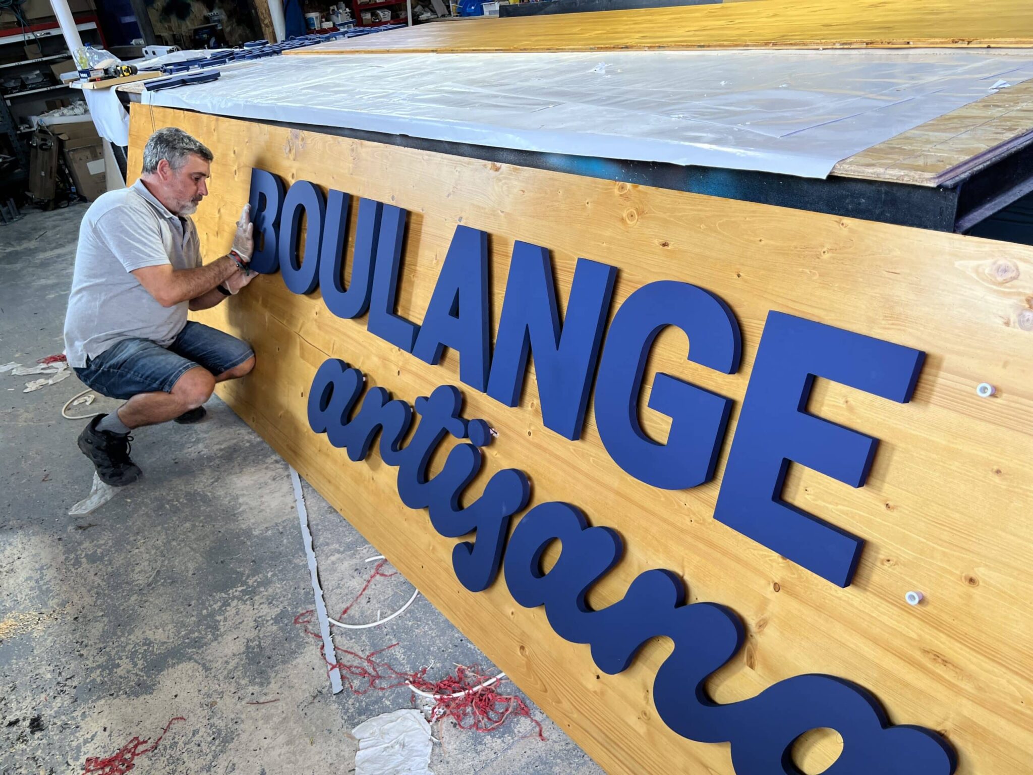 - Assemblage: Les lettres rétro-éclairées seront fixées sur le fond en bois vernis avec précision. Les câbles et les connexions électriques seront soigneusement dissimulés pour un aspect propre.