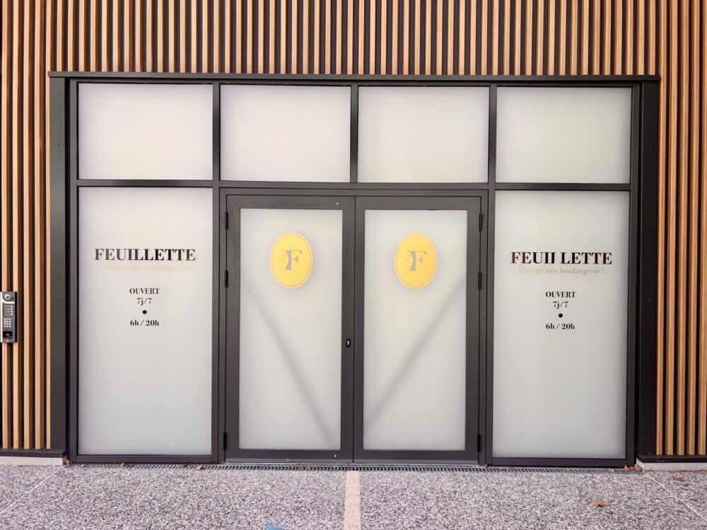 La Magie de la Vitrophanie : La vitrophanie, un art subtil de la décoration de vitres, a été utilisée pour créer une atmosphère unique à l’intérieur de la boulangerie. Les motifs délicats et les illustrations se fondent harmonieusement avec l’environnement, transformant chaque fenêtre en une vitrine de tentations sucrées. Les clients se sentent instantanément transportés dans l’univers gourmand de Feuillette dès qu’ils franchissent la porte.