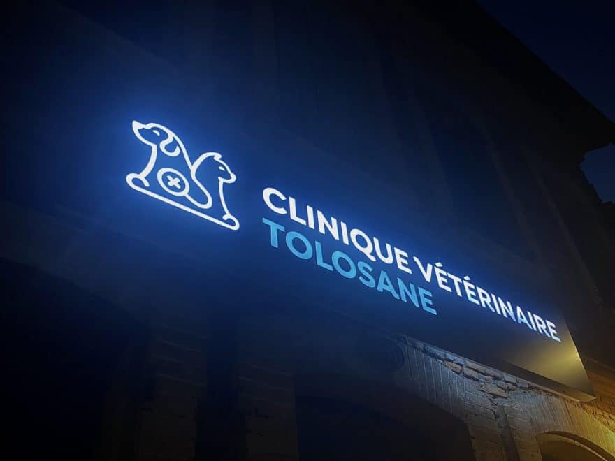 La Clinique Vétérinaire Tolosane a fait appel à notre société pour la création, la fabrication et la pose d’une enseigne lumineuse et de plaques plexiglas extérieures.