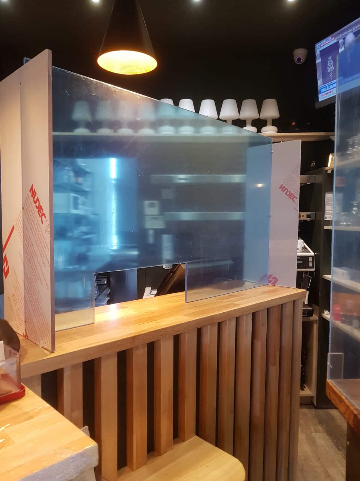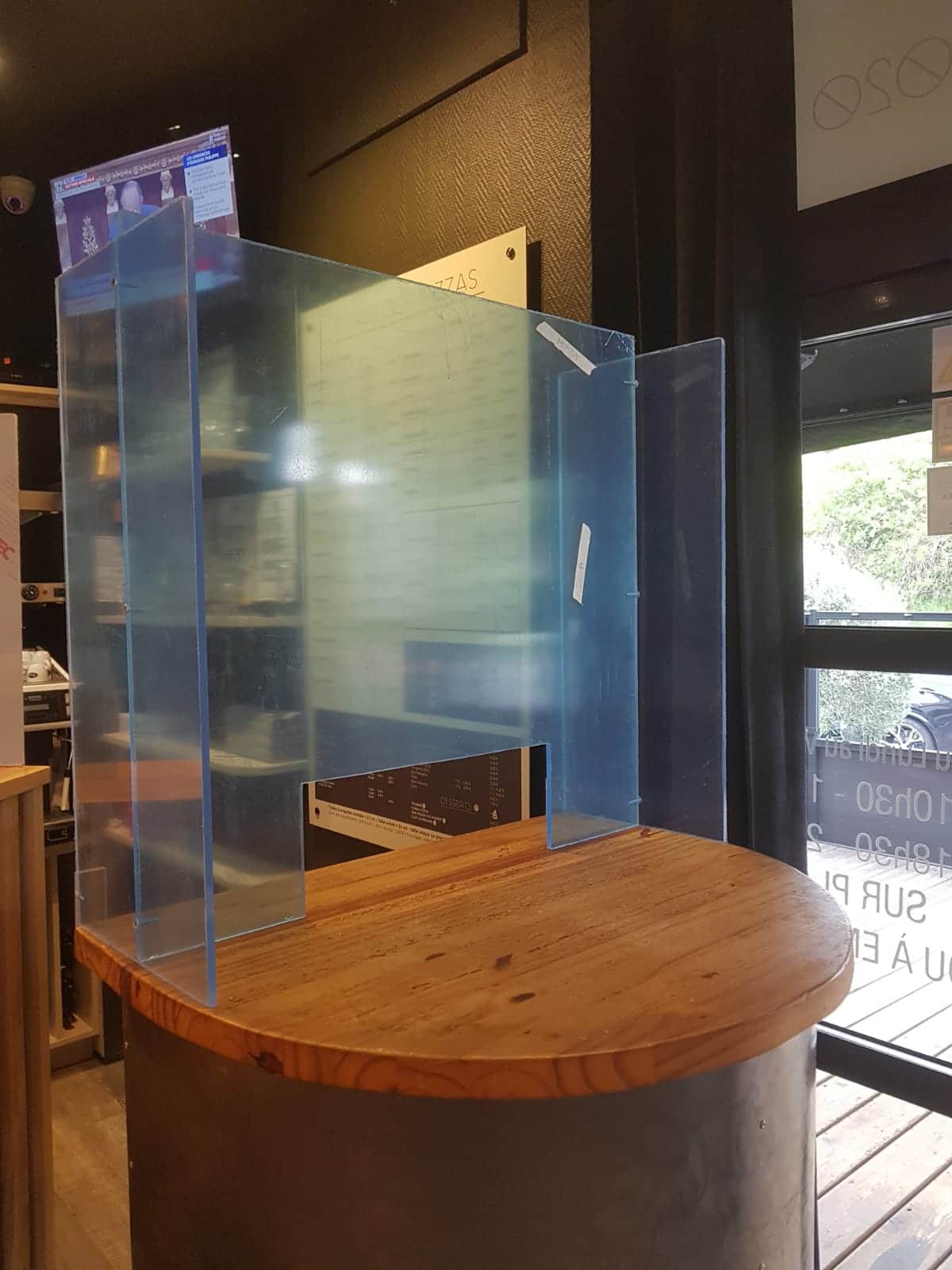 Protection plexiglas, protection incolore plexiglas, vitrine anti postillons plexiglas Toulouse, découpe sur mesure de protections incolores pour commerces Toulouse.