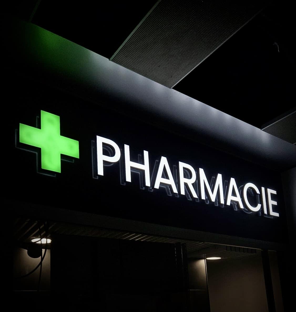 Une enseigne lumineuse à lettres rétroéclairées pour pharmacie combine visibilité, modernité et efficacité énergétique. Les lettres, éclairées de l’arrière par des LED, créent un effet lumineux subtil et élégant, qui permet à l’enseigne de ressortir clairement, même la nuit ou par faible luminosité. Ce type d’enseigne attire l’attention des passants et renforce la visibilité de la pharmacie. Les avantages incluent une consommation d’énergie réduite grâce à l’utilisation de LEDs, une grande durabilité, et une personnalisation facile des lettres (taille, police, couleurs), pour s’adapter à l’identité de la pharmacie. Cette solution garantit également une lecture facile du nom et des informations essentielles, tout en offrant une image professionnelle et moderne. En outre, les lettres rétroéclairées créent une ambiance accueillante, renforçant la crédibilité et la confiance des clients envers l’établissement.